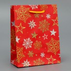 Пакет подарочный «Звёздные снежинки», 12×15×5.5 см