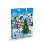 Сумка подарочная "Еловое царство" из мягкого пластика с пластиковой ручкой 30х(40+10)см, 150мкм