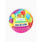 Тарелка бумажная С днем рождения воздушные шары и звезды (18см)